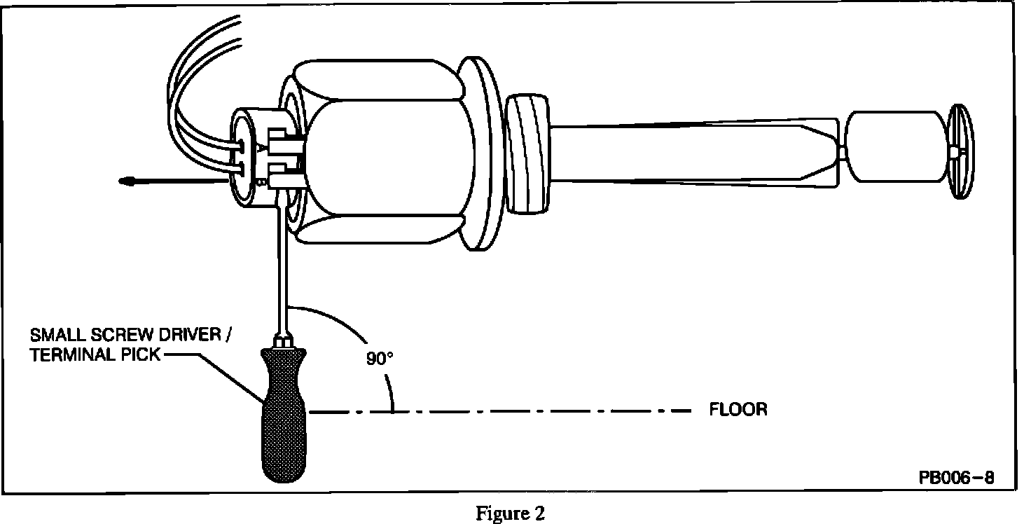 4. Disconnect electrical connector with a flat terminal pick or a small flat-end screw driver as indicated in Figure 2.