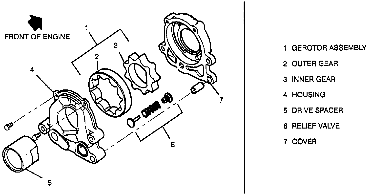 1. Install oil pump drive spacer into oil pump from rear so that drive flat engages pump rotor.