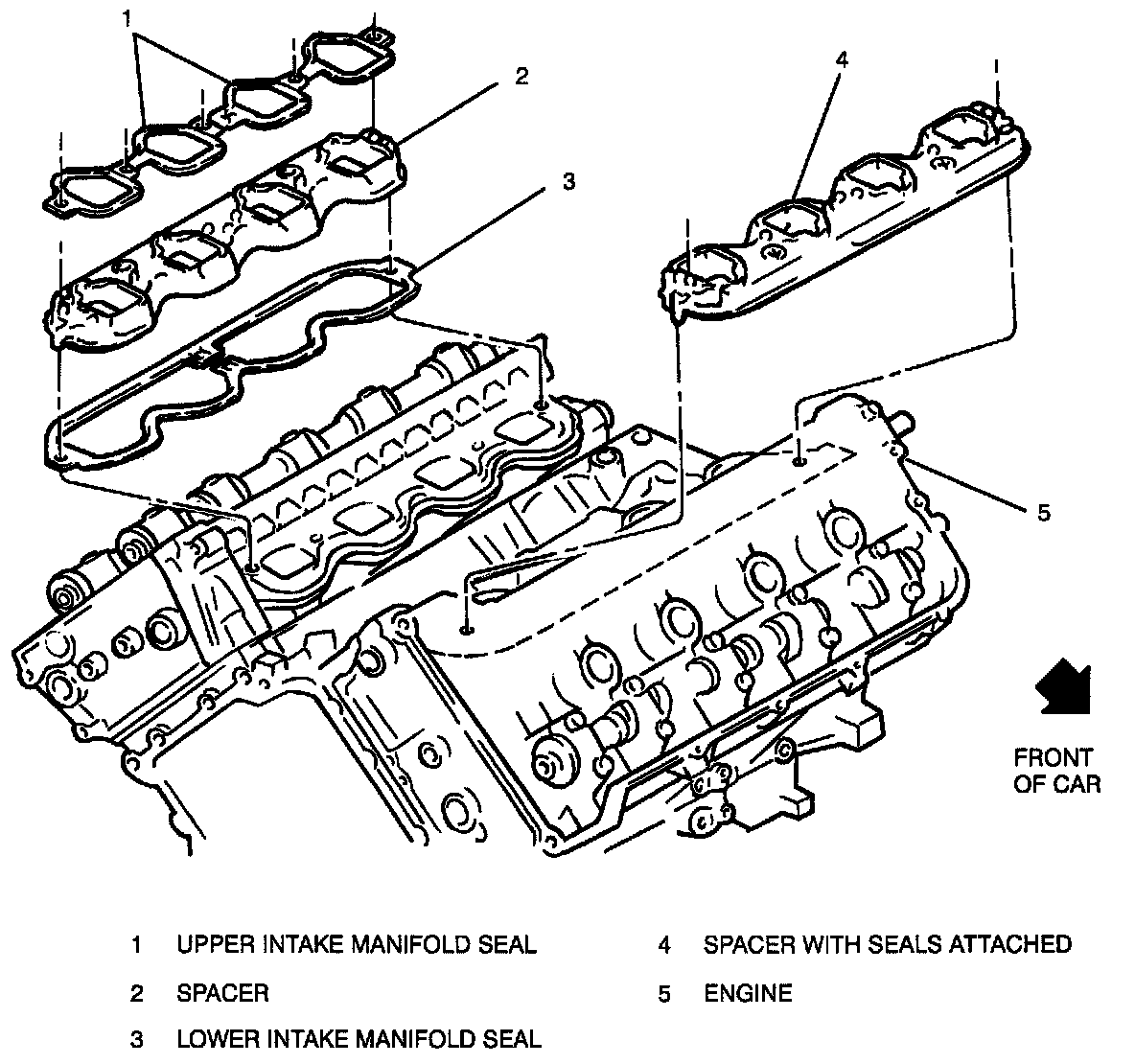 4. Intake manifold seals and spacers at cylinder heads (if replacement was necessary).