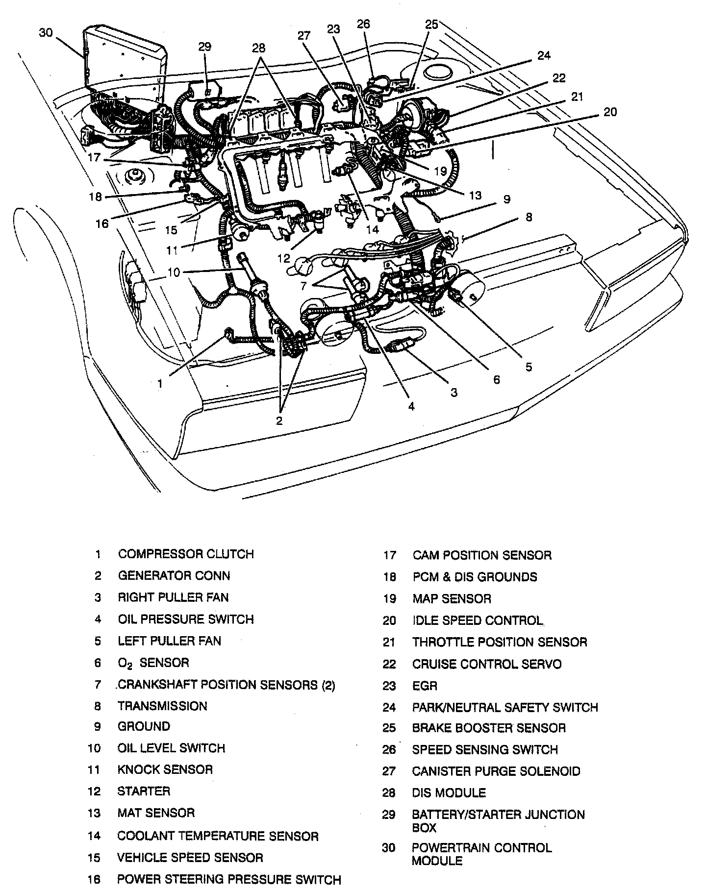 19. Disconnect engine harness connectors at Powertrain Control Module (PCM).