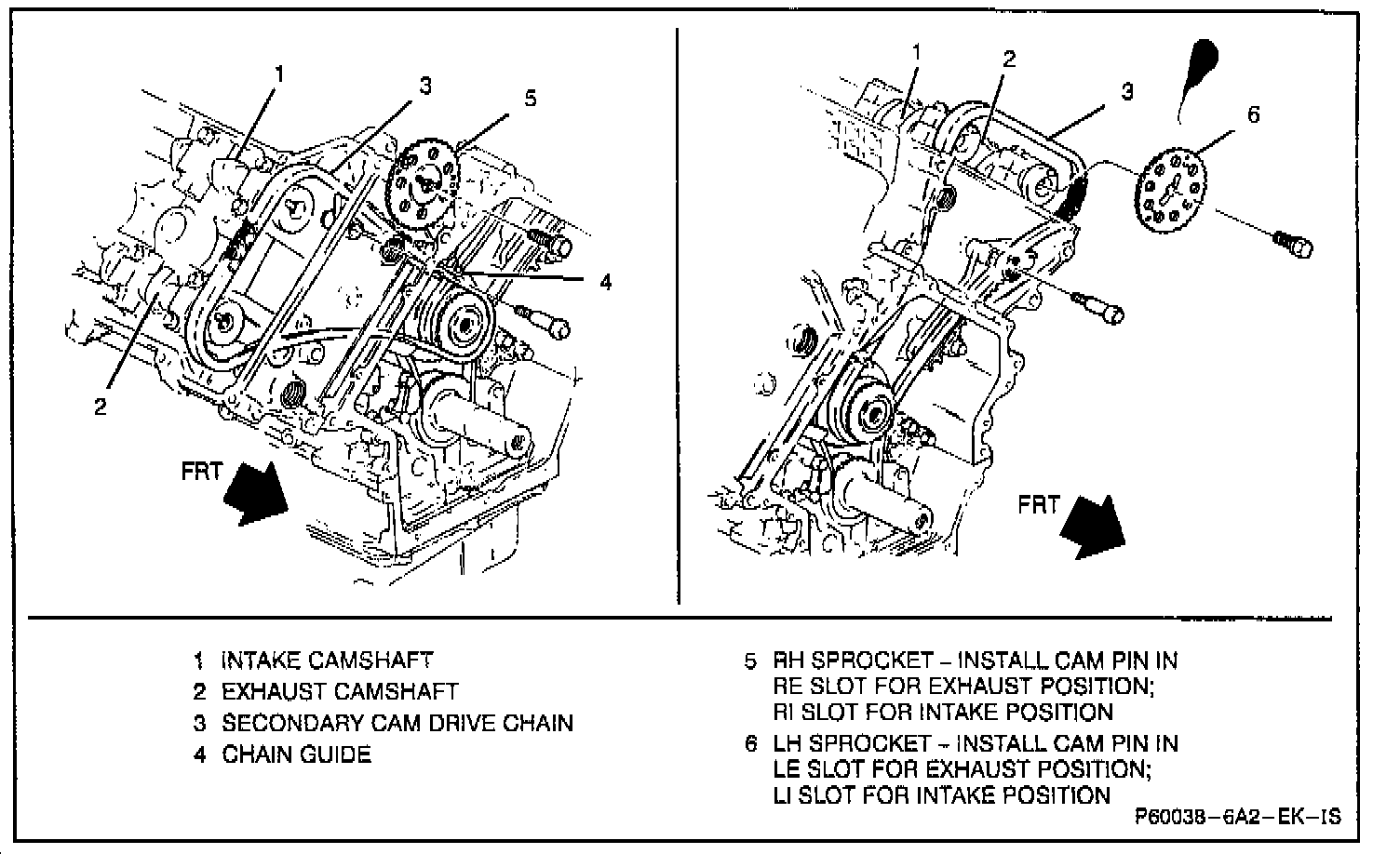 5. LH cam sprocket bolts and sprockets.