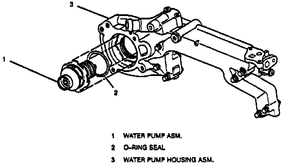 3. Water pump housing. Tighten housing bolts to 10 Nm (88 lb in.)