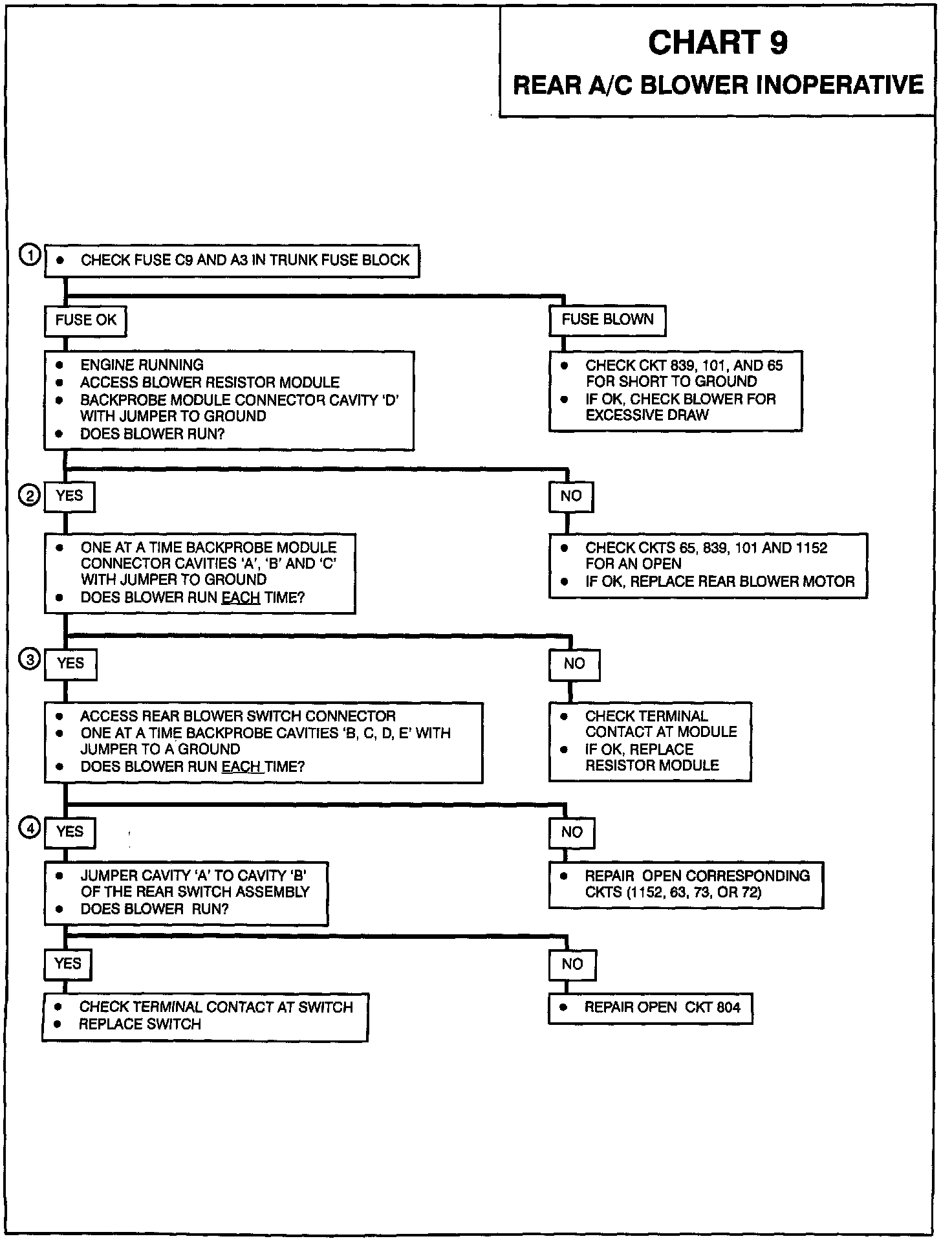 Chart 9 Rear A/C Blower Inoperative