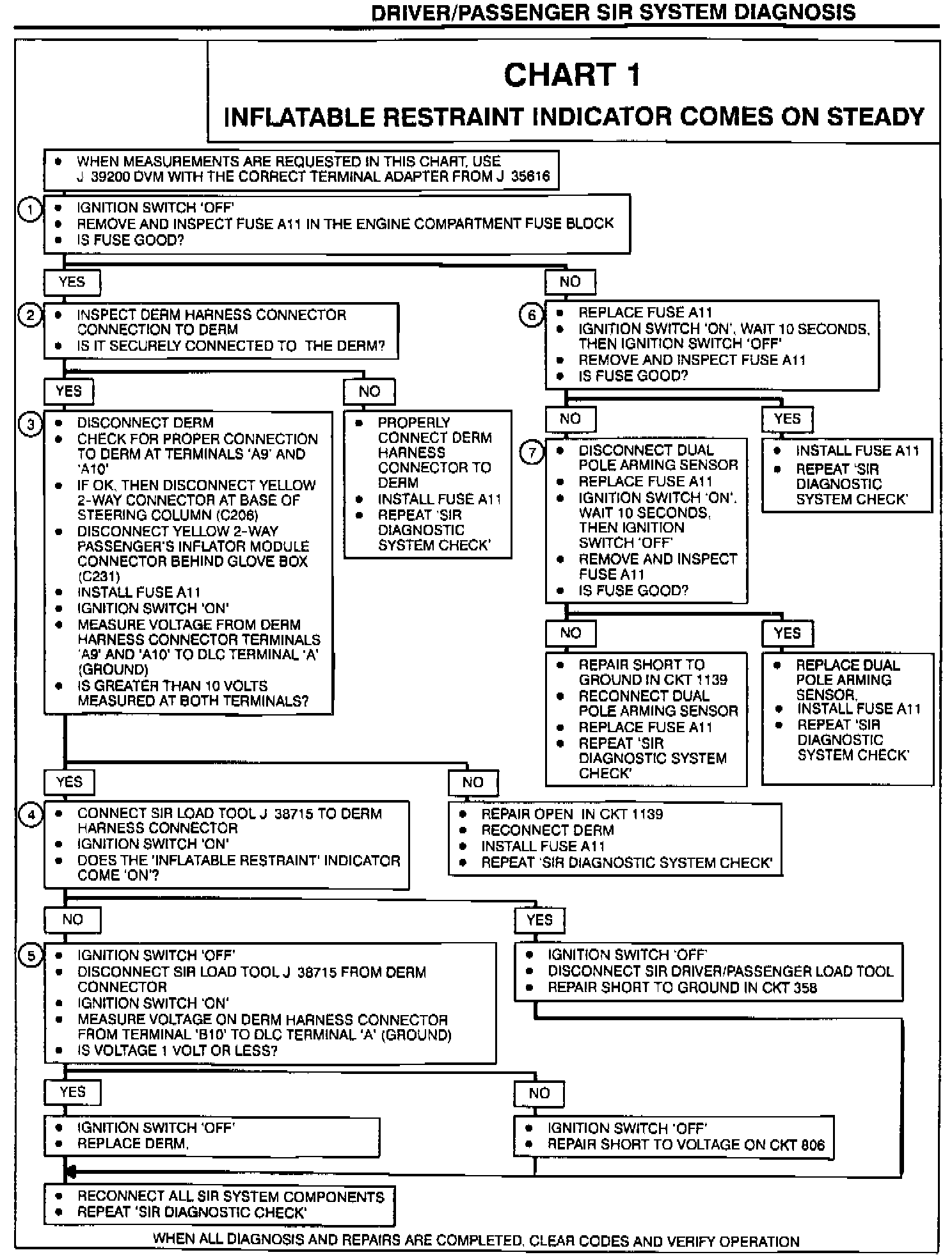 Chart 1 Inflatable Restraint Indicator Comes on Steady