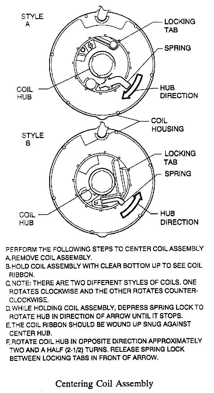 NOTICE: Coil assembly (3) will become uncentered if, steering column is separated from steering gear and is allowed to rotate, or centering spring is pushed down, letting hub rotate while coil (3) is removed from steering column.
