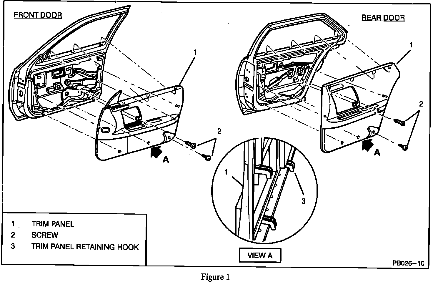 1993 Sevilles after VIN breakpoint 807000 now have an additional hidden screw in all four door trim panels. The screw is located under a flap in the lower rear corner of the carpet area. Refer to Figure 1.
