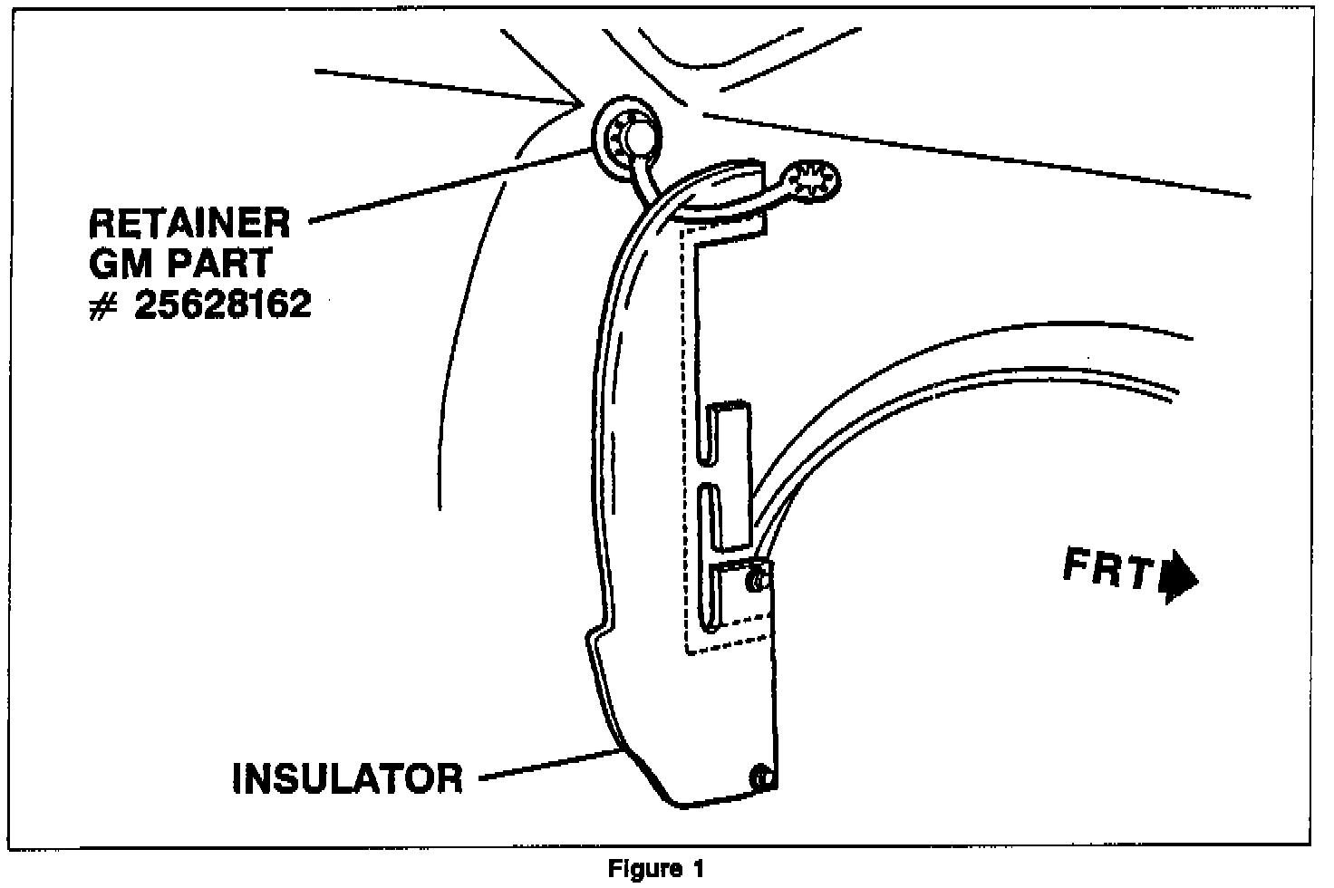 Some owners may comment on the front fender insulator falling out of position. This results in reduced acoustical dampening or poor appearance.