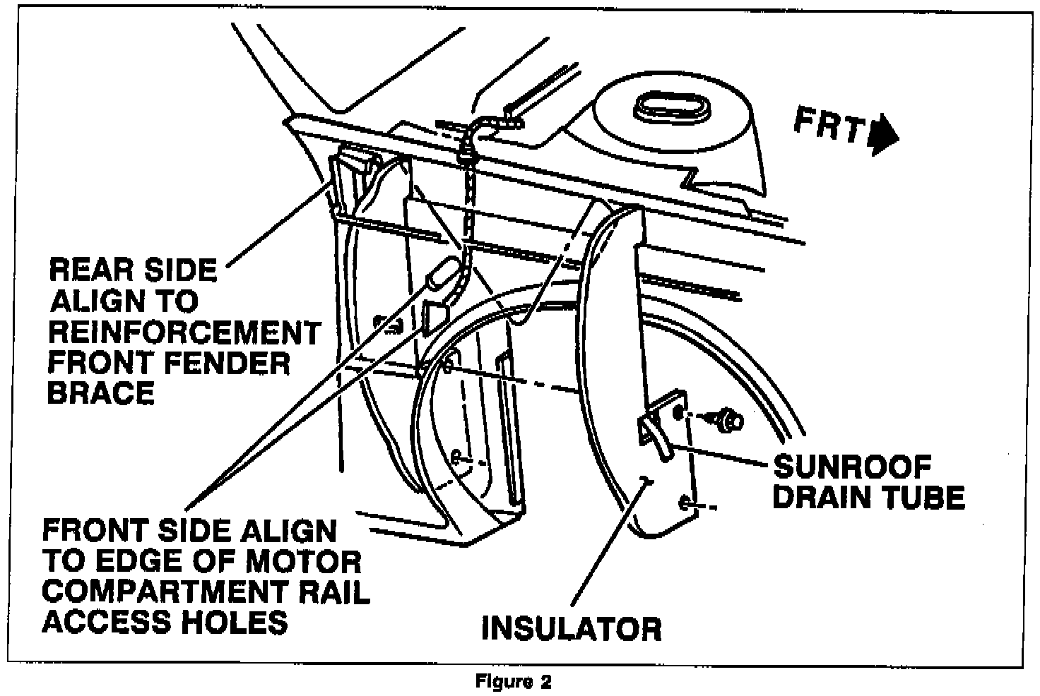 On vehicles equipped with sunroofs, ensure the drain tube is routed correctly through the insulator slot or hole. Refer to Figure 2.