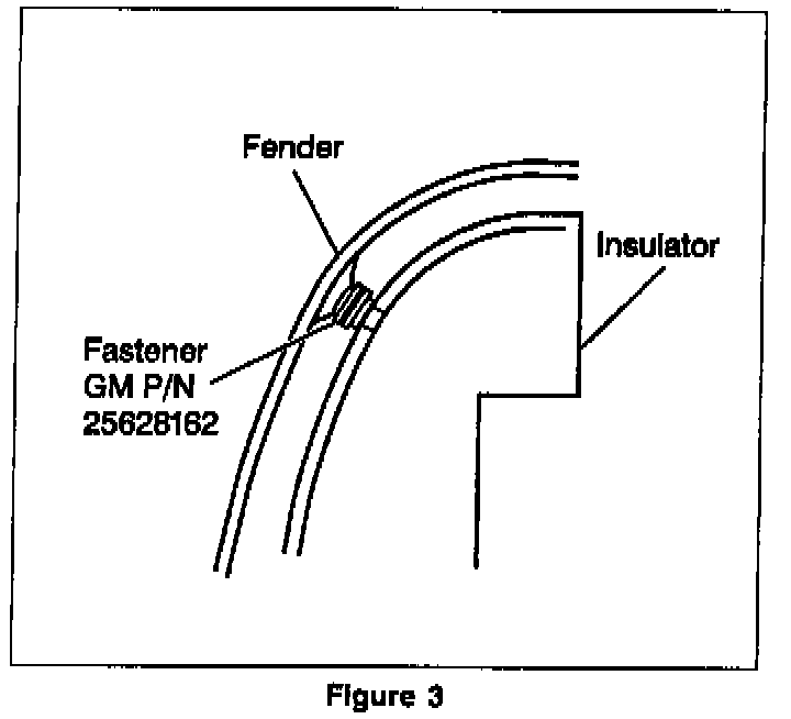 5. Reposition front fender insulator. Clean dirt and grease from the surface on fender where the fastener will be adhered to.