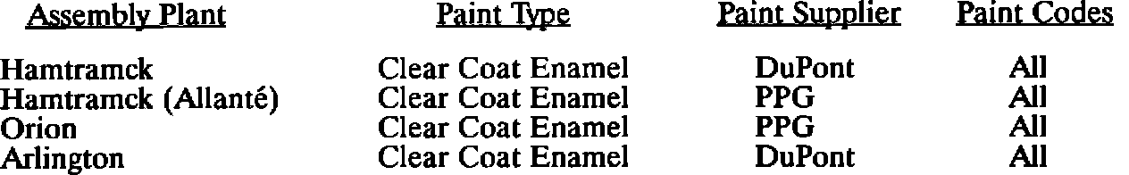 Base coat replacements, which are essentially color-keyed primers, are being utilized on 1993 DeVilles and Fleetwoods to improve the factory processing of the vehicles. Specific areas that will be painted with the BCR exposed include: