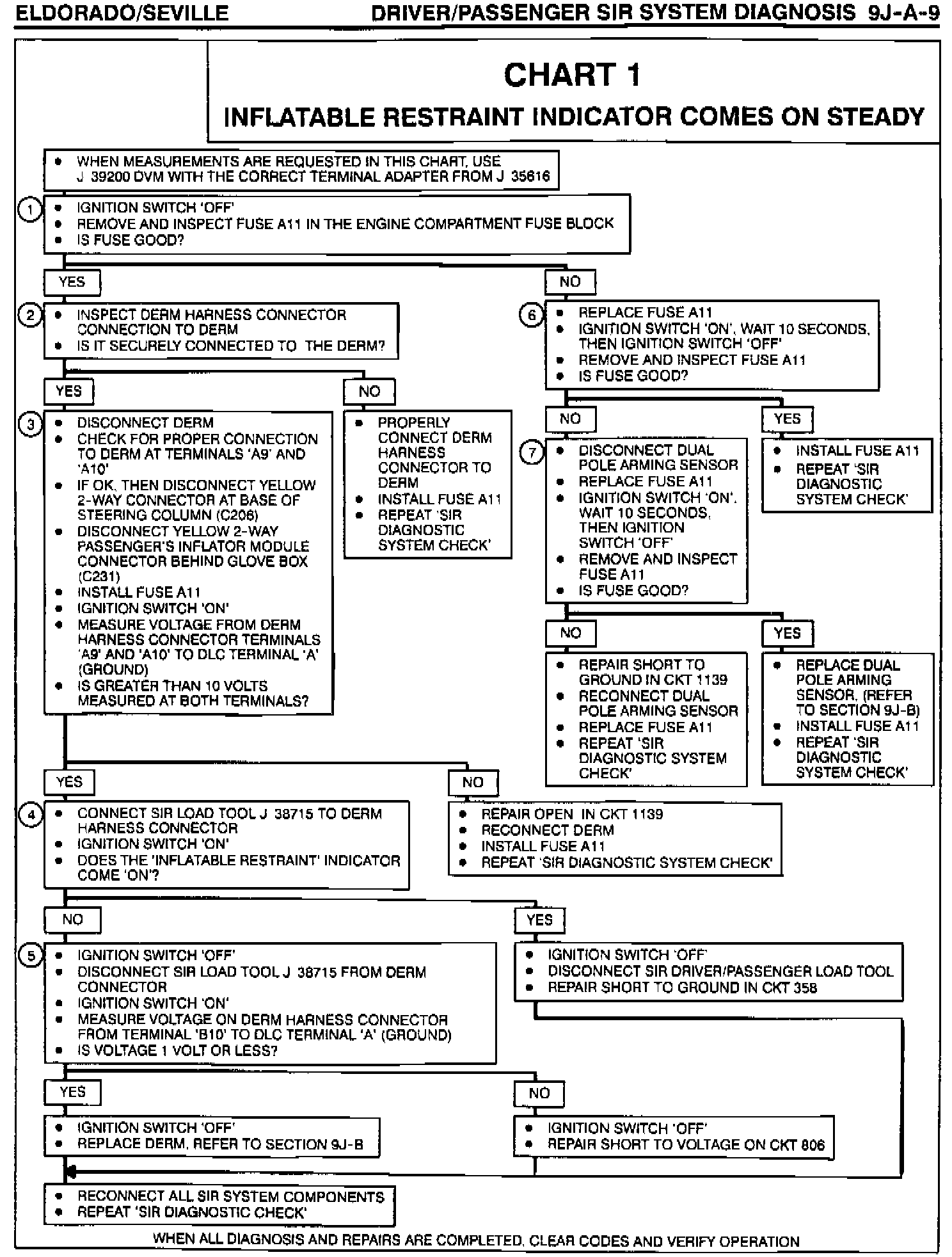 Please update the Supplemental Inflatable Restraint (SIR) service procedure found in Section 9J-A of the Service Manual to reflect the revised chart.