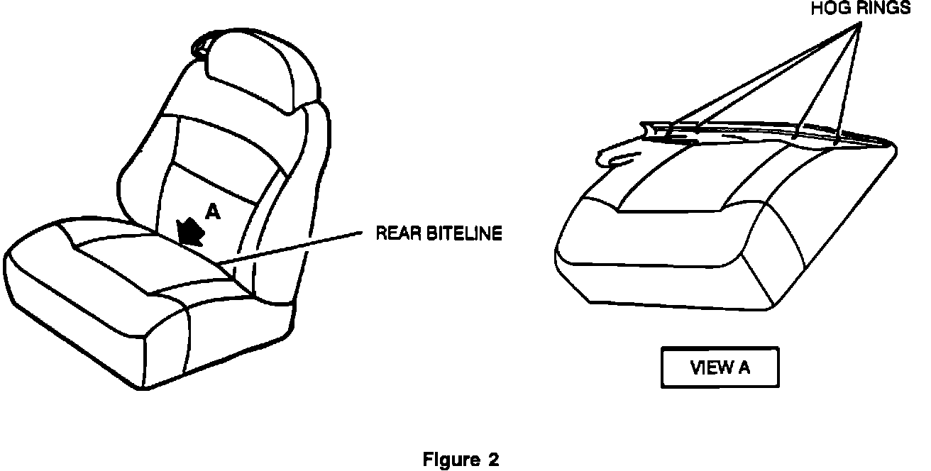 For repair procedure refer to Section 10-10 of the 1992 or 1993 Eldorado and Seville Service Information Manual. An additional step to hog-ring the seat cushion cover to the foam must be performed using hog-rings P/N 04876466 (4 per seat cover). (See Figure 2.)