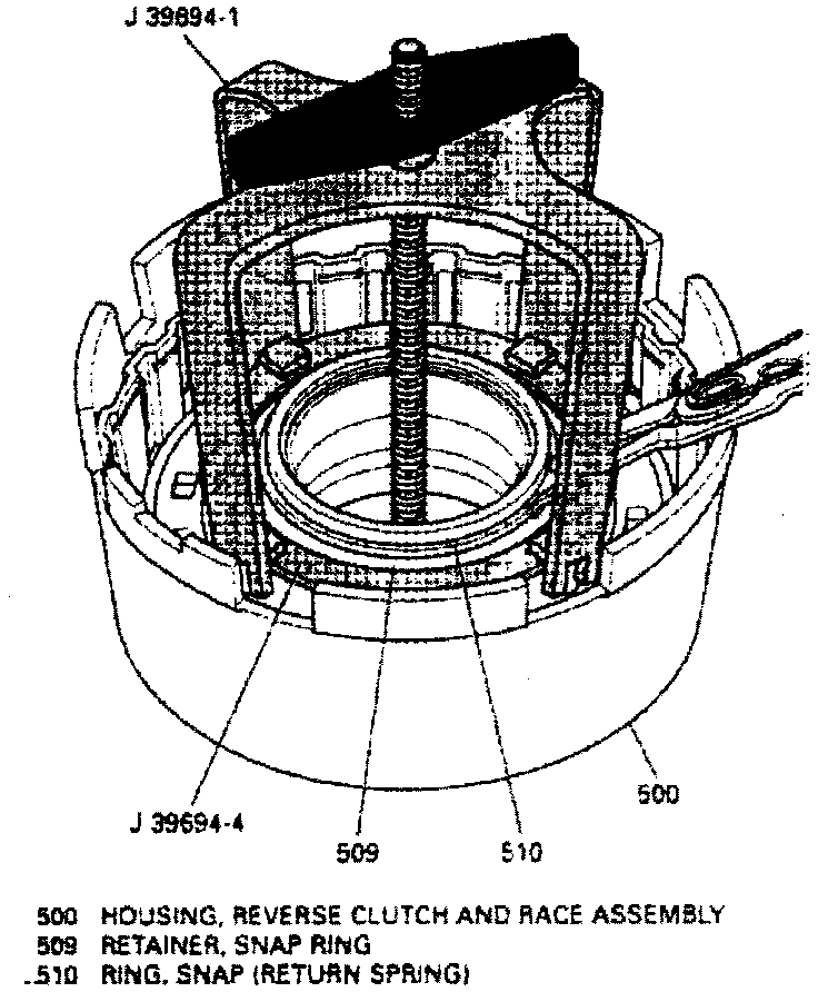 3. Compress spring and retainer assembly with clutch compressor tool No. J-39694, or equivalent.