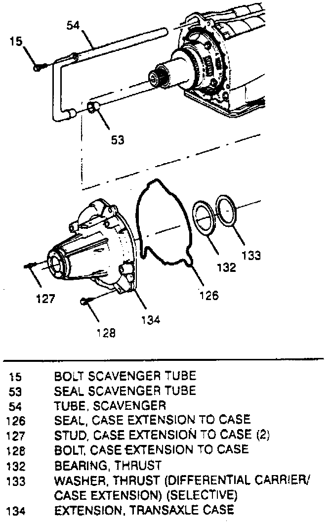 9. Remove case extension bolts and stud using a torque wrench, then case extension and seal. Seal may remain in extension.