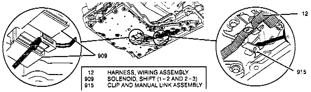 14. Connect wiring harness to shift solenoids A and B and transaxle pressure sensor.