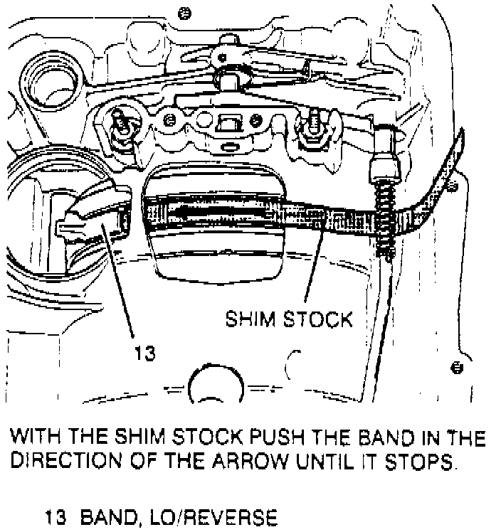 8. Position the low reverse band using a 0.02-0.03 inch shim.