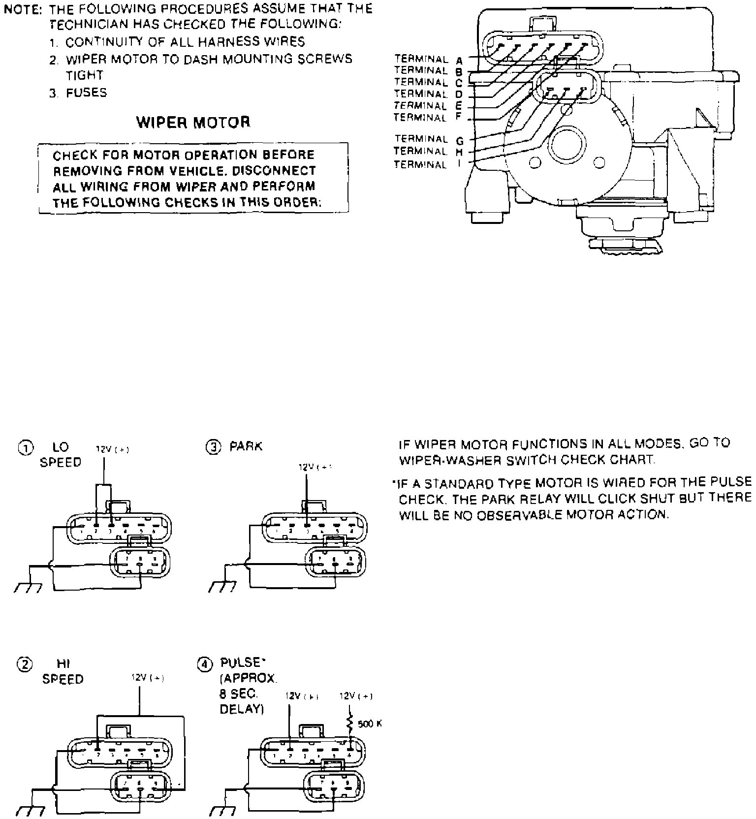 Wiper Motor Terminal Check