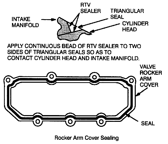 1. Sealing surfaces of intake manifold and cylinder head for damage. Nicks and deep scratches should be filled with RTV just before rocker arm cover installation.