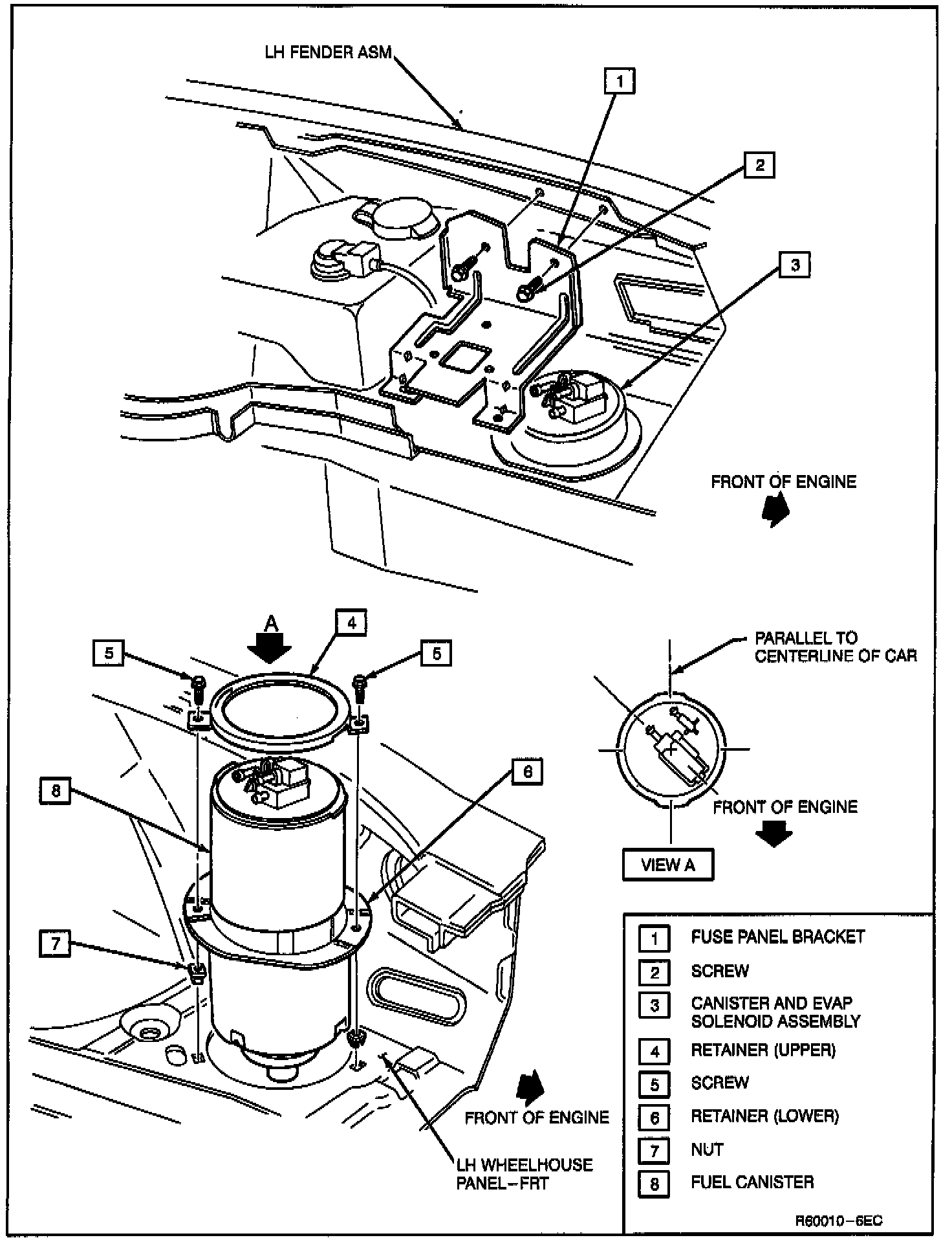 1. Canister in Bracket. Make sure canister is positioned as shown in the accompanying illustration.