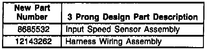 When replacing the input speed sensor on a Hydra-Matic 4T80-E transaxle built before November 23, 1992 you must order both input speed sensor (8685532) and wire harness assembly (12143262).