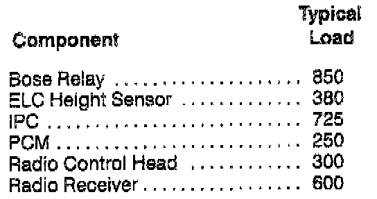11. Check current reading. Allow 30 seconds for reading to stabilize. Verify that Retained Accessory Power (RAP) is off. Electronic Level Control (ELC) may remain active for up to 10 minutes. If current reading is at or below two amps, turn the test tool knob to the "ON" position (to maintain continuity in the electrical system) and switch to a lower scale for a more accurate reading, or install a more accurate meter, if necessary. Turn test tool knob to "OFF". If current reading is above 30 milliamps, (0.030A) refer to Component Load chart for specific current loads for a microprocessor that may be in the "awake" state. A current reading below 30 milliamps is normal. A reading of (0.OA) indicates an open circuit with the meter connection or test switch.