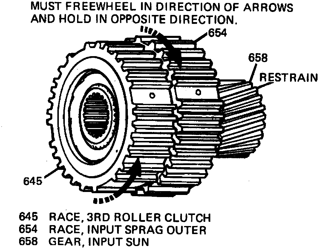 41. Remove 3rd roller clutch and input sprag from input sun gear, then the input sun gear spacer and retainer from sun gear.