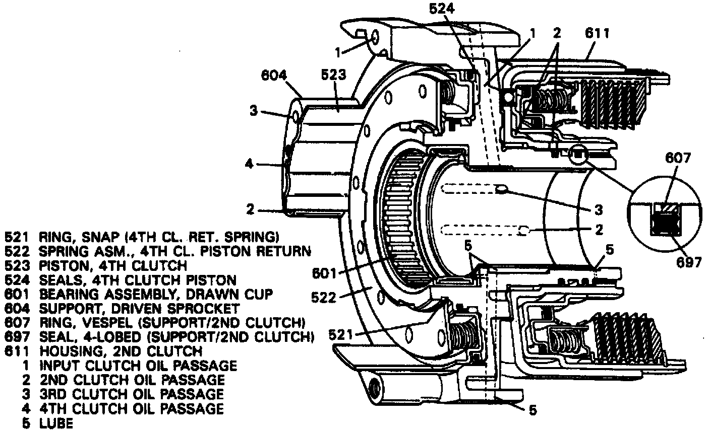 97. If necessary to replace piston seal, remove old seal from piston, then apply a suitable lubricant to new seal and install with seal lip facing 2nd clutch housing.