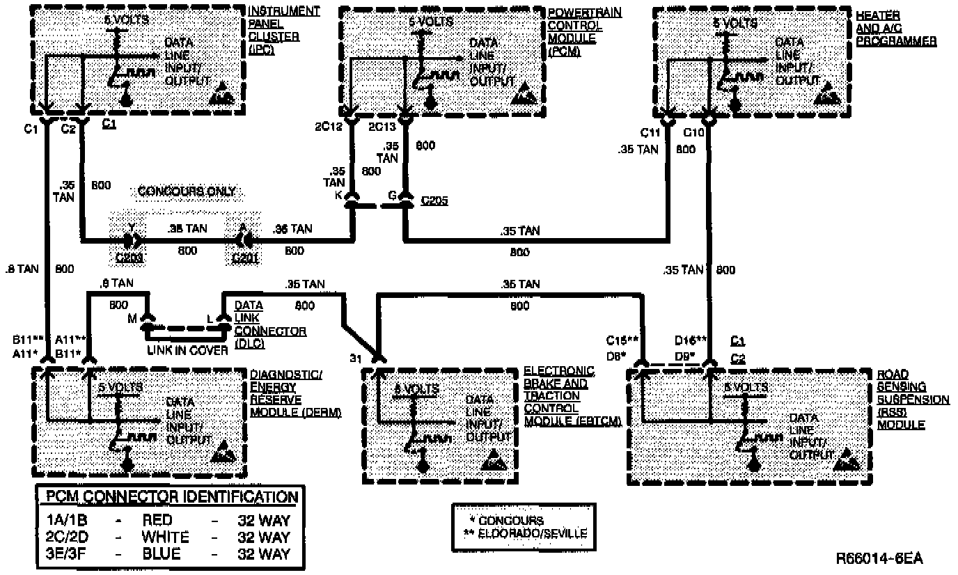 The data from the PCM to the IPC contains engine operating information. The PCM-IPC data includes engine coolant temperature, rpm and injector pulse width values so the PCM can control cooling fans and the IPC can display rpm and mph. The IPC sends the PCM air conditioning status to be used for idle speed control and ambient (outside) temperature for use in Torque Converter Clutch (TCC) apply and release decisions.