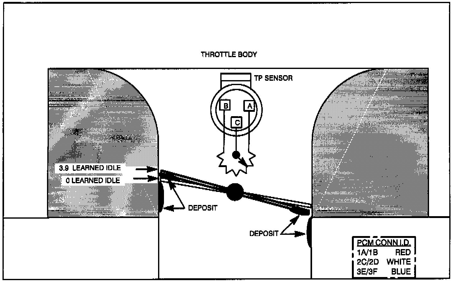 The Powertrain Control Module (PCM) continuously learns base idle position. This base idle position is the relationship of engine rpm to Throttle Position (TP). The PCM is limited to a fixed amount of learned throttle angle that it can apply. When this limit is reached, Code P085 will set. The cause of this increase in learned throttle angle is usually deposits in the throttle body.