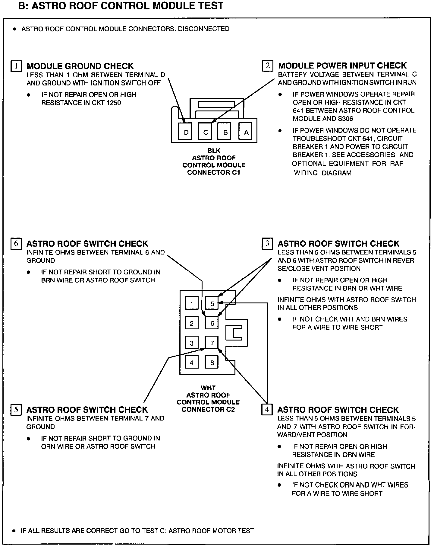 B: Astro Roof Control Module Test: