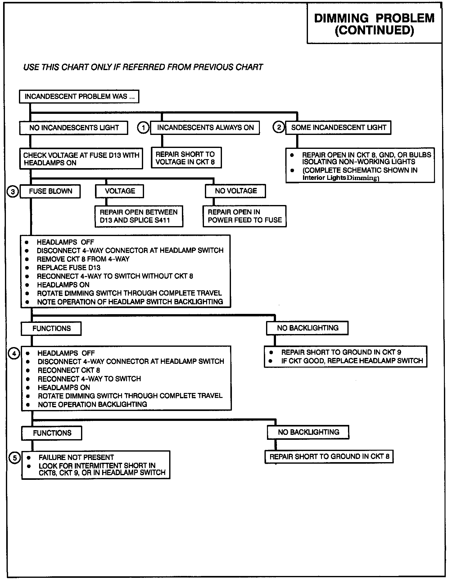 2. If some incandescent bulbs work, while others don't, the problem is either burned out bulbs, loss of ground, or most likely an open in CKT 8 isolating the inoperative bulbs from voltage.