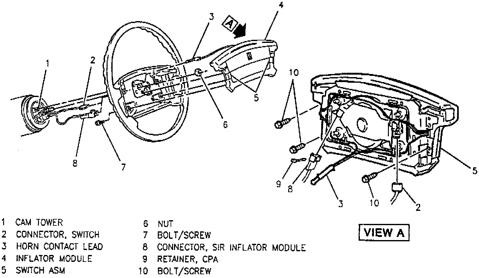 2. Remove module from steering wheel, then disconnect horn contact, by pushing slightly and twisting counterclockwise.