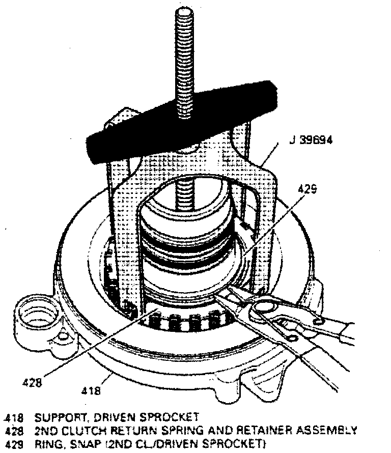 3. Compress spring and retainer using clutch compressor tool No. J-39694, or equivalent.
