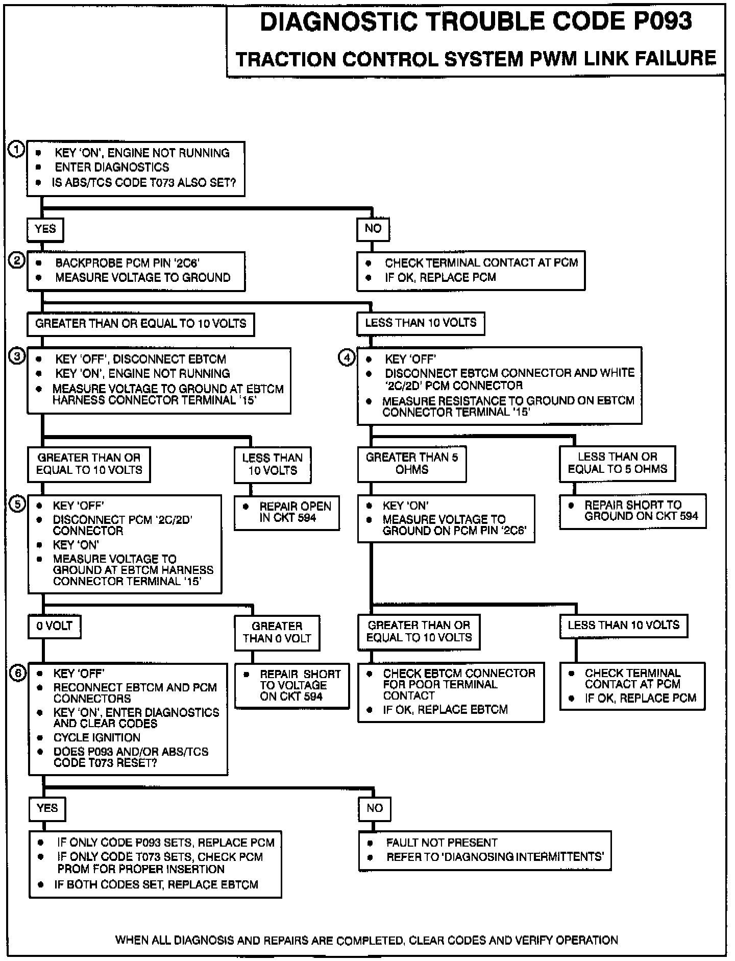 This diagnostic test checks for a traction control system Pulse Width Modulation (PWM) link failure to the Powertrain Control Module (PCM).