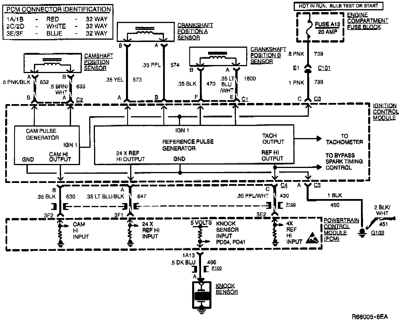 The ramp spark value of 0.3° for 3.11 final drive (VIN Y) or 3° for 3.71 final drive (VIN 9) will be incremented until a maximum of 21° is reached. If no knock is detected for 1 second at maximum spark Code P131 will set.