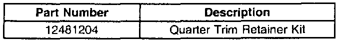 Repair instructions are included in the Quarter Trim Retainer Kit, P/N 12481204.
