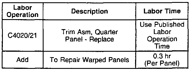 For vehicles repaired under warranty, use the table as shown.