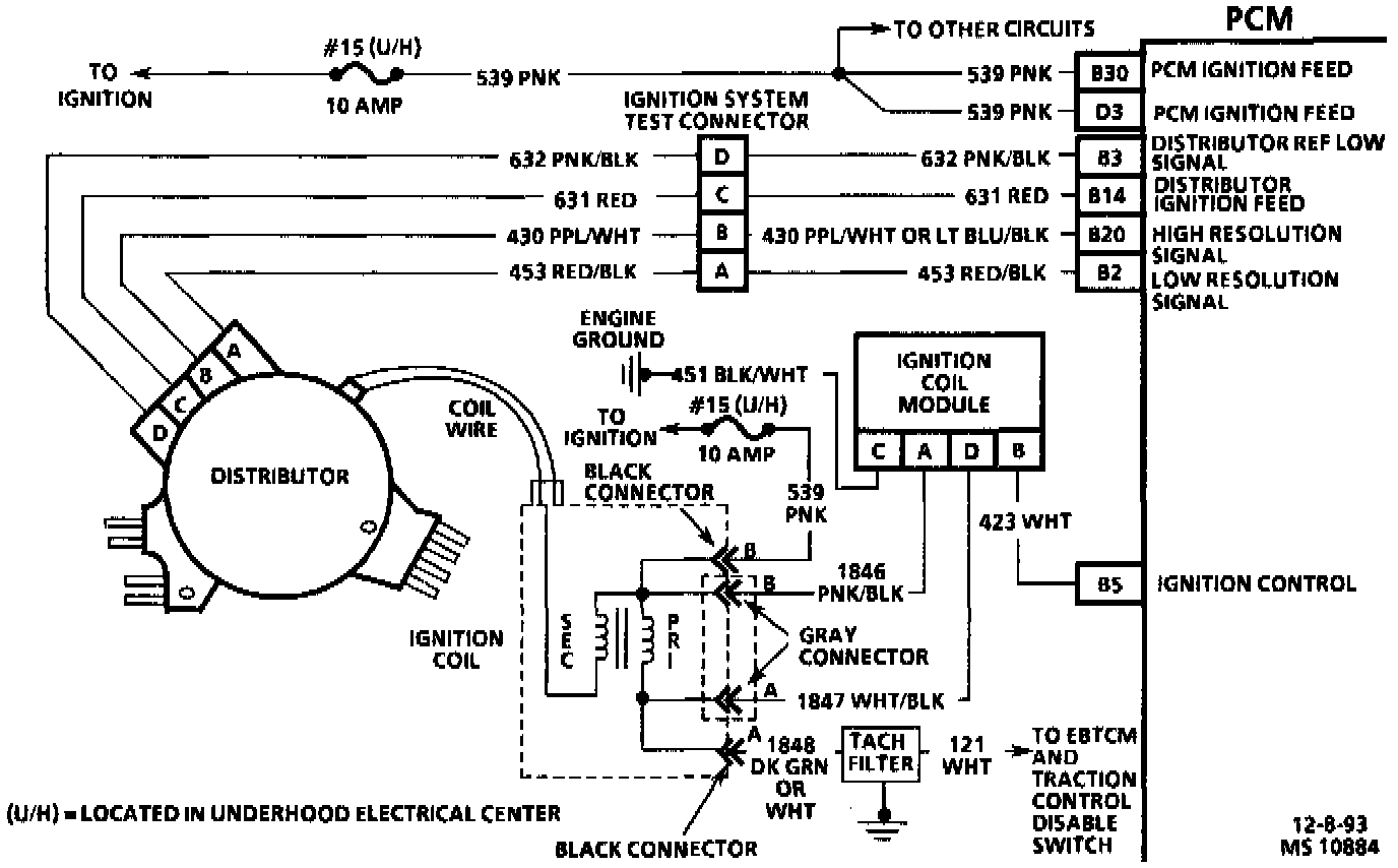 2. This test will determine if the PCM is sending out a signal to the distributor for processing. If this signal is not available or is shorted to ground or voltage, the distributor cannot ground it to produce reference pulses.