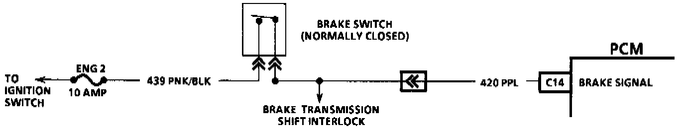 The transmission Torque Converter Clutch (TCC) brake switch is used to indicate brake pedal status. The normally closed brake switch supplies a B+ signal on CKT 420 to the Powertrain Control Module (PCM). The signal voltage is opened when the brakes are applied. The PCM uses this signal to de-energize the TCC solenoid when the brakes are applied.