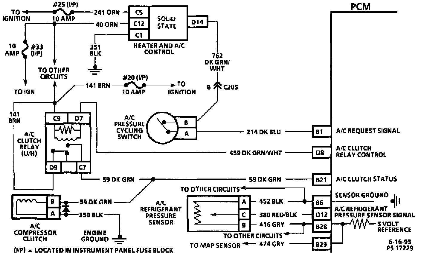 The PCM can use this information to turn "ON" the engine cooling fans when A/C refrigerant pressure is high. The PCM can prevent compressor damage by disabling the compressor clutch if head pressure gets too high.