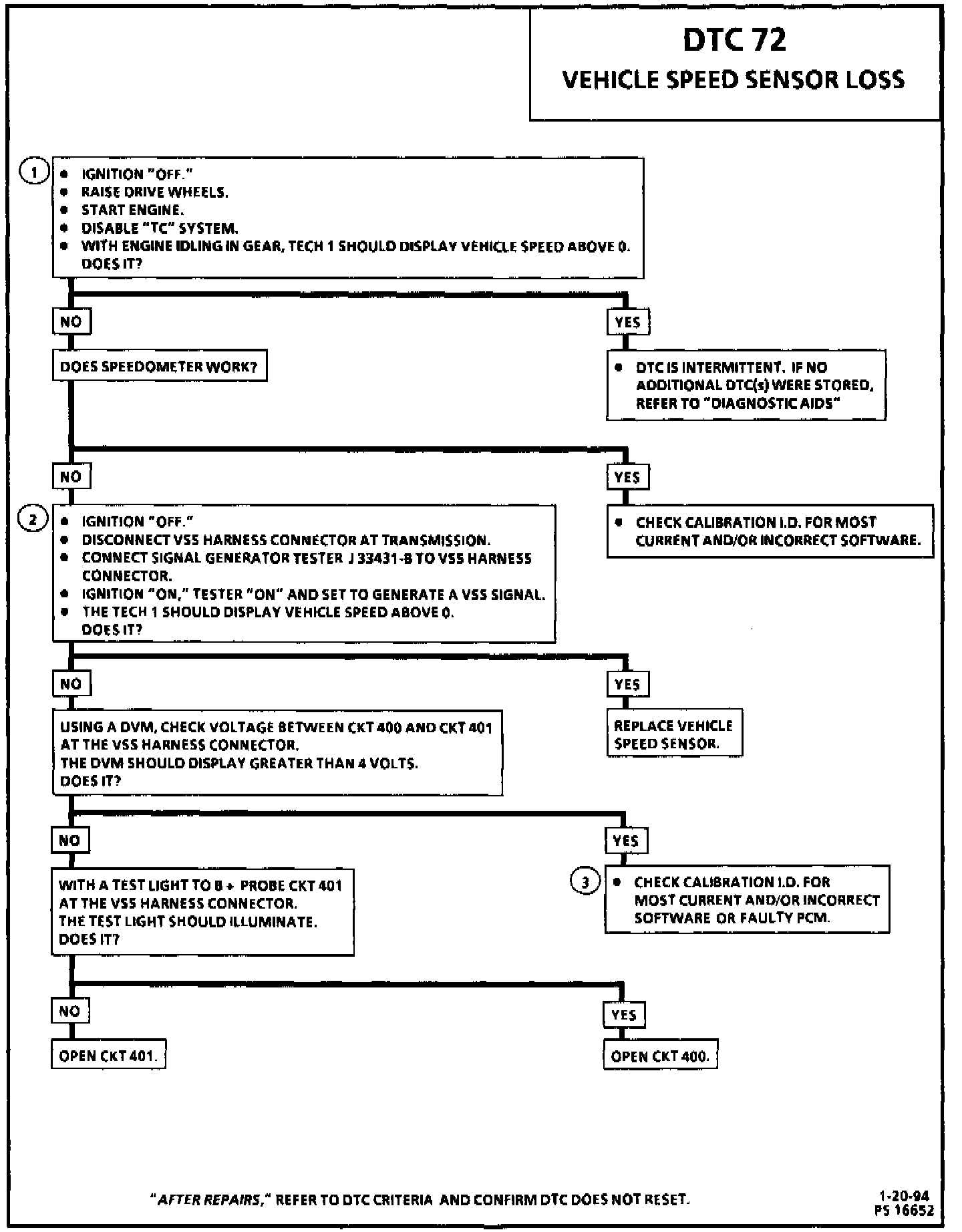 ^ DTC 72 will set when vehicle speed has been detected and is lost.
