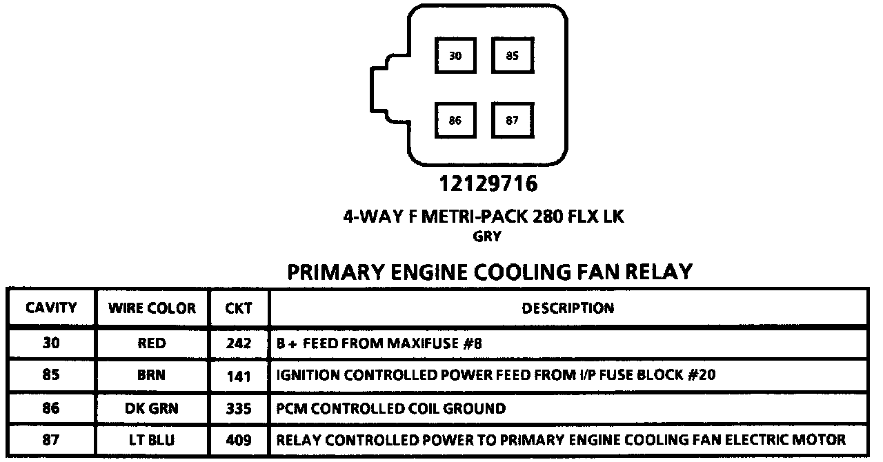 Primary Engine Cooling Fan Relay Connector View: