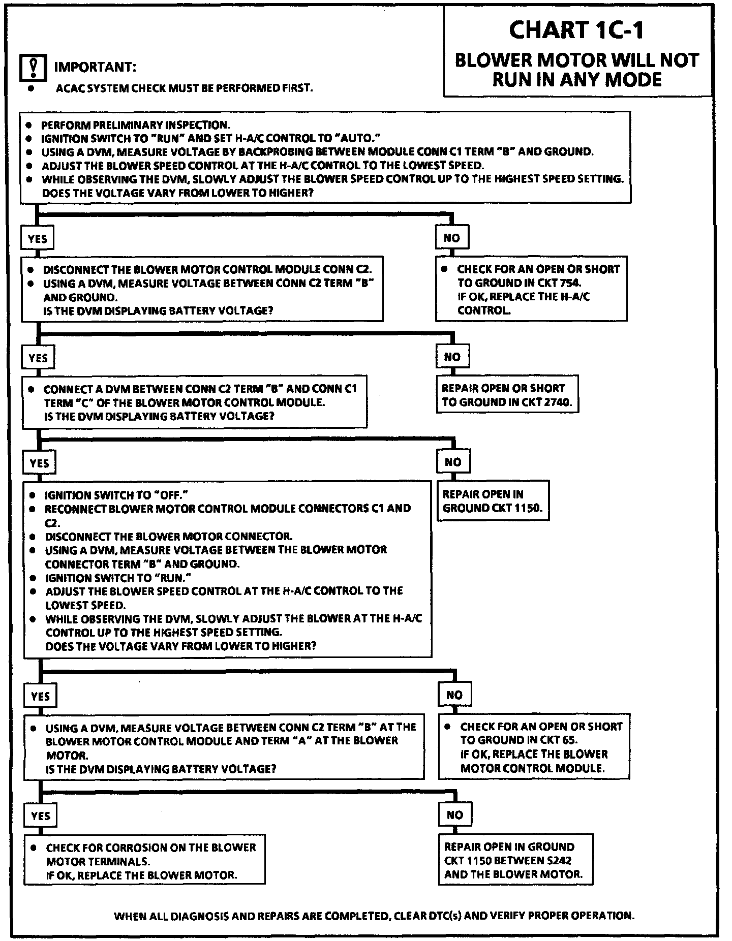 Chart 1C-1 Blower Motor Will Not Run In Any Mode