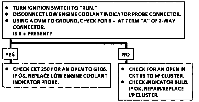 Chart 3 Low Coolant Level Indicator Inoperative, Coolant Level Low: