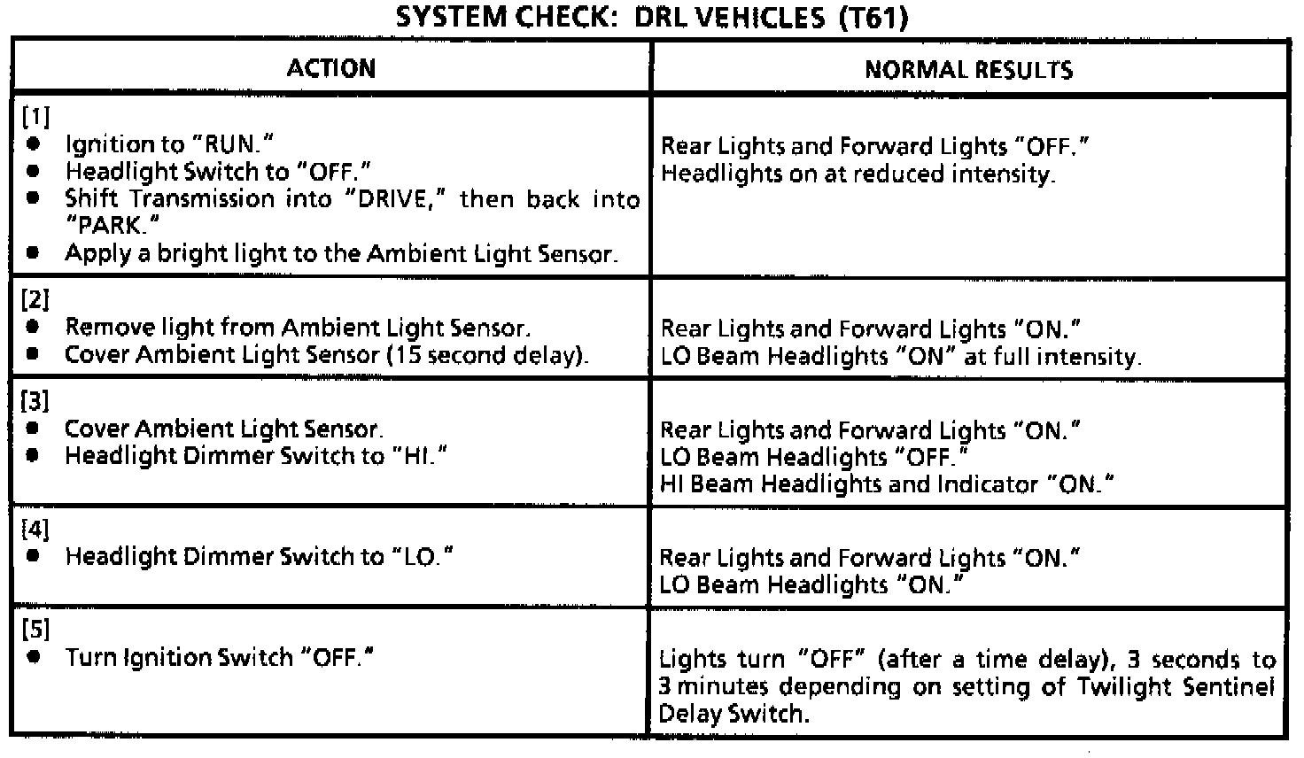 System Check DRL Vehicles (T61):