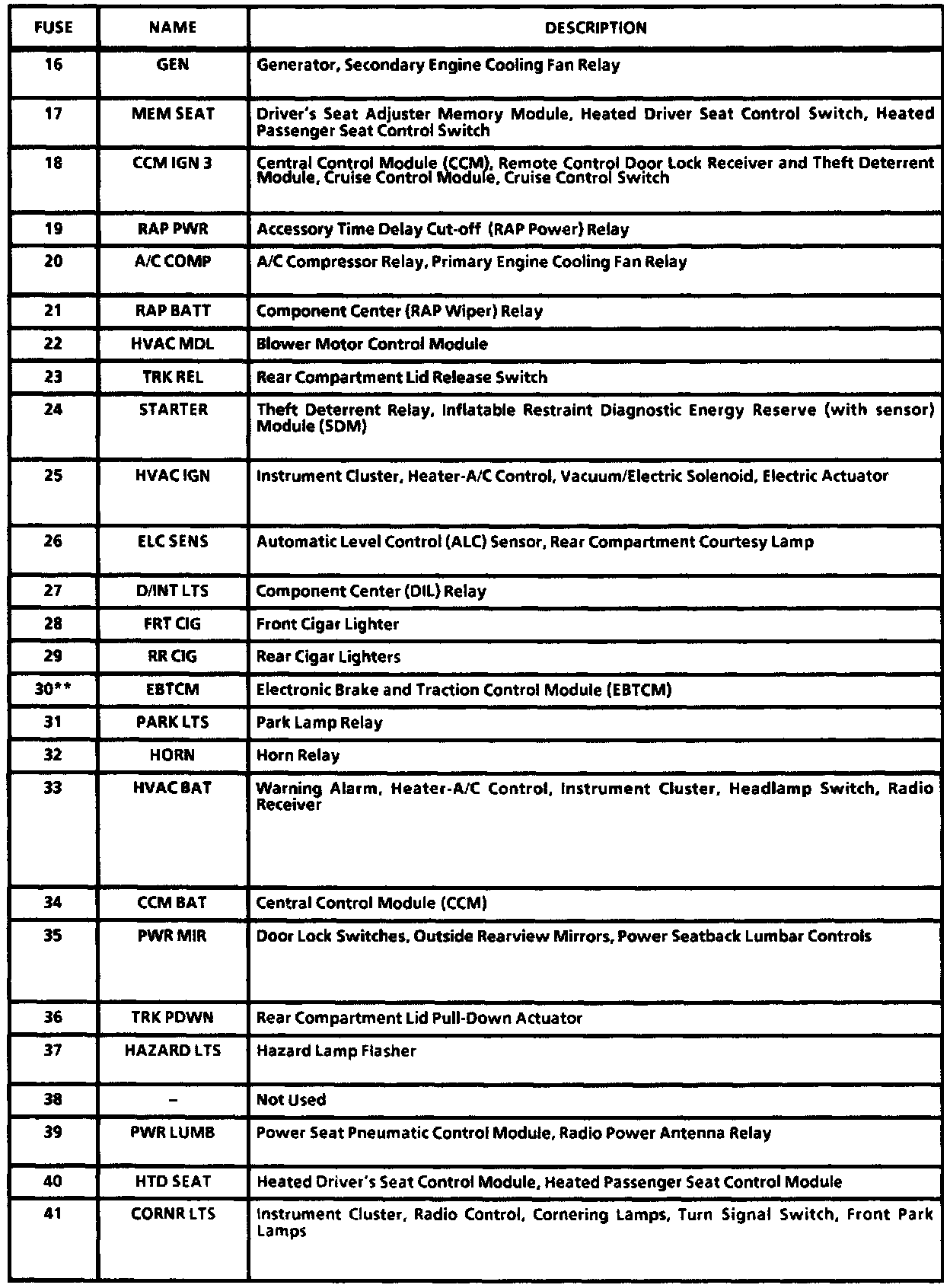 Instrument Panel (I/P) Fuse Block Details, Cont.: