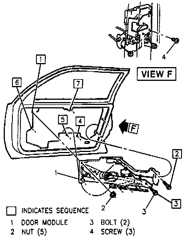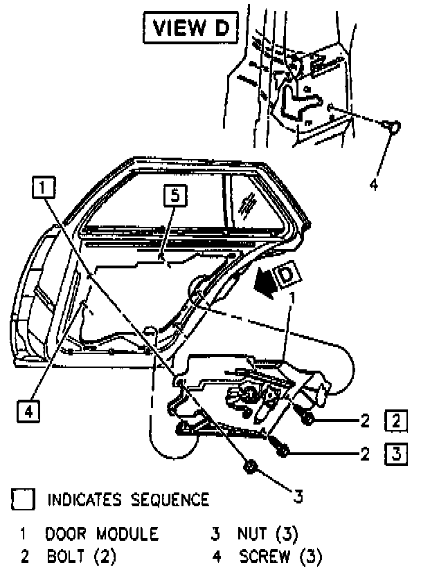 6. Wiring harness from lock, window motor and module.