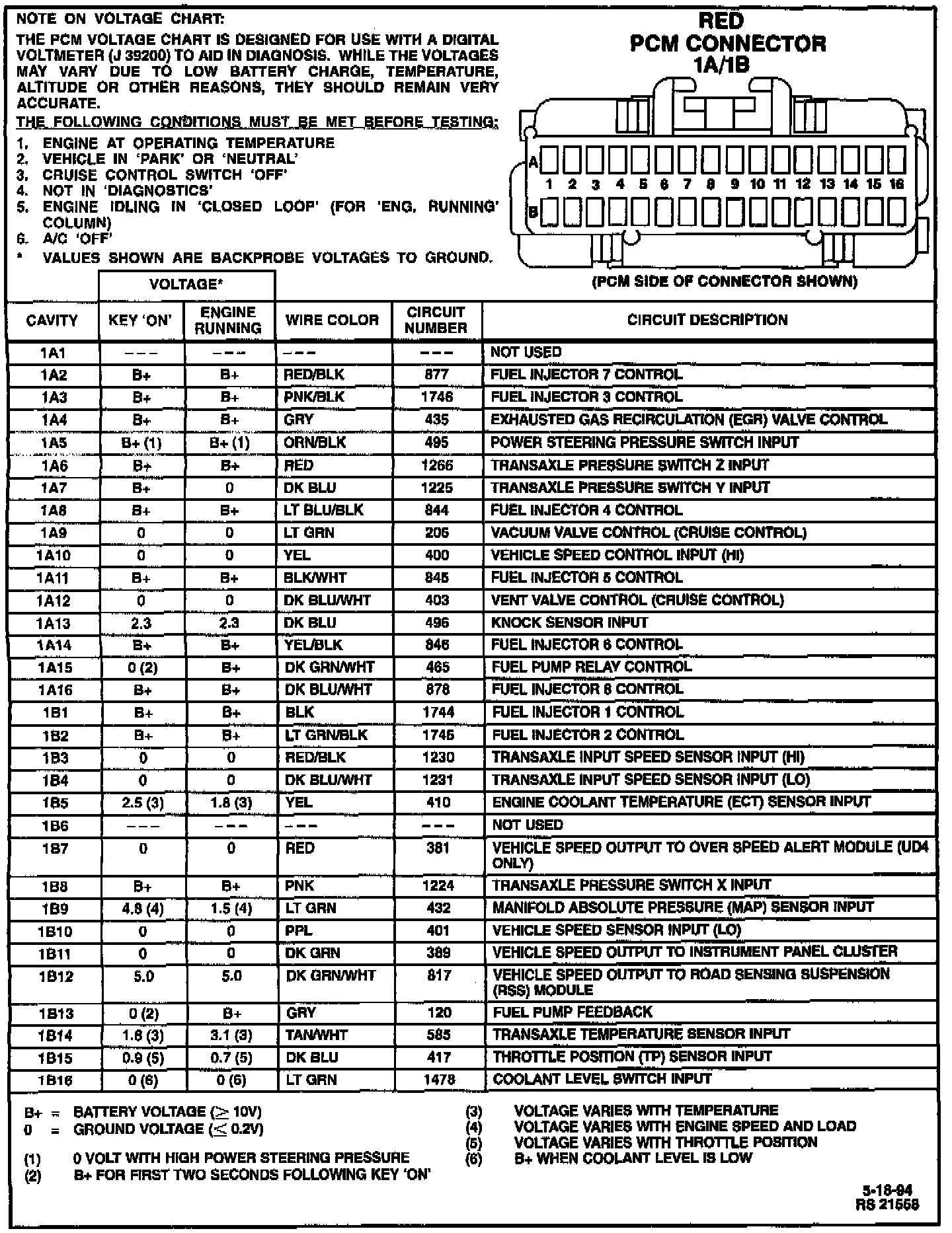 PCM Connector Terminal ID and Voltage Values: Part 1 Of 3: