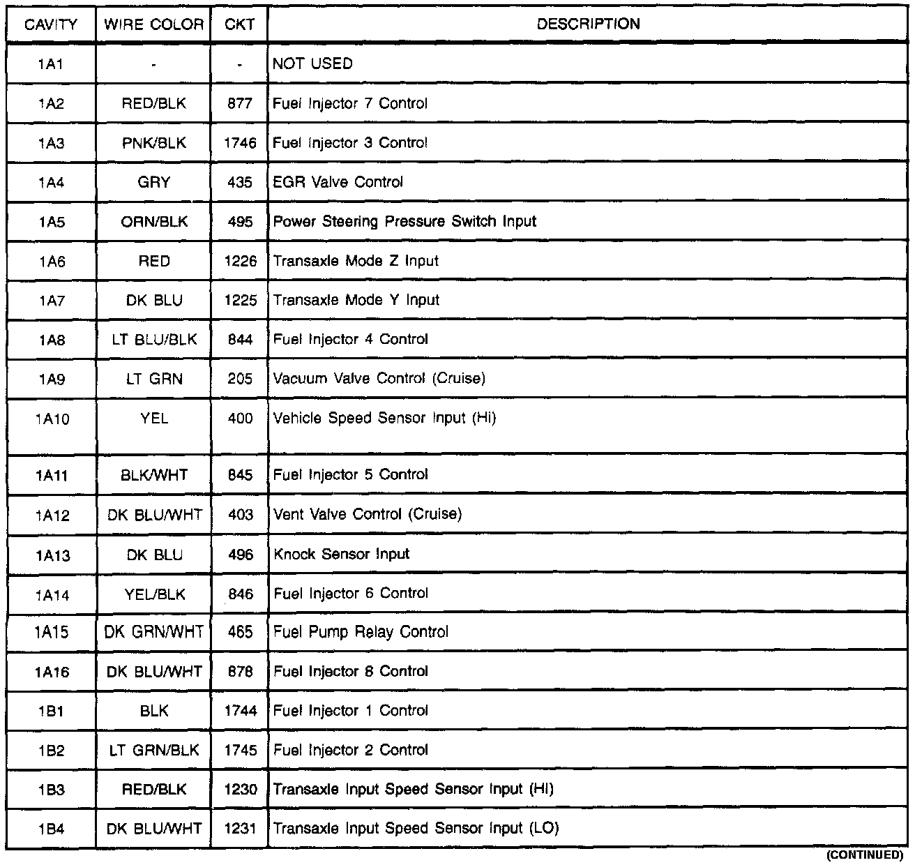 Harness Connector Faces: PCM -1A/1B: