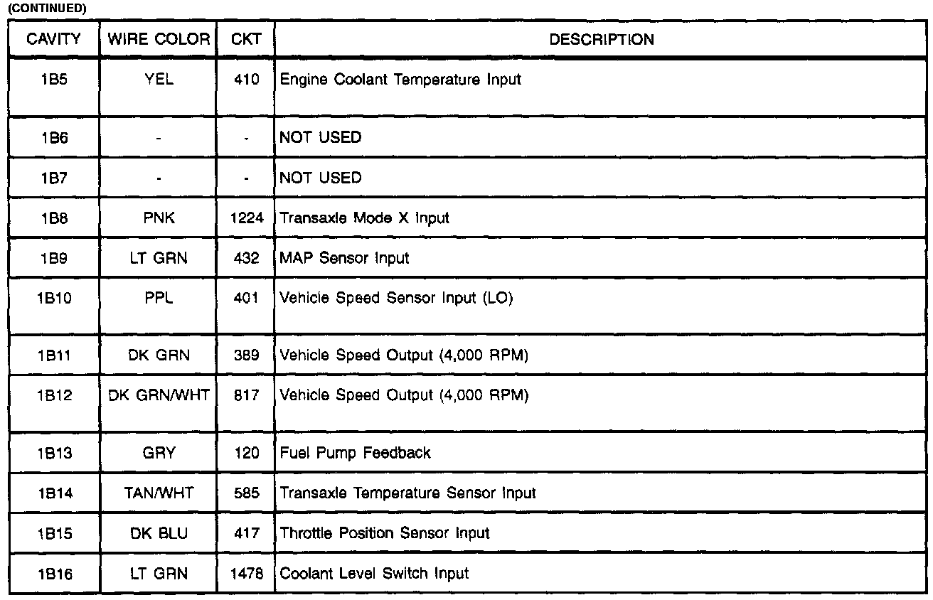 Harness Connector Faces: PCM -1A/1B (Part 2 Of 2):